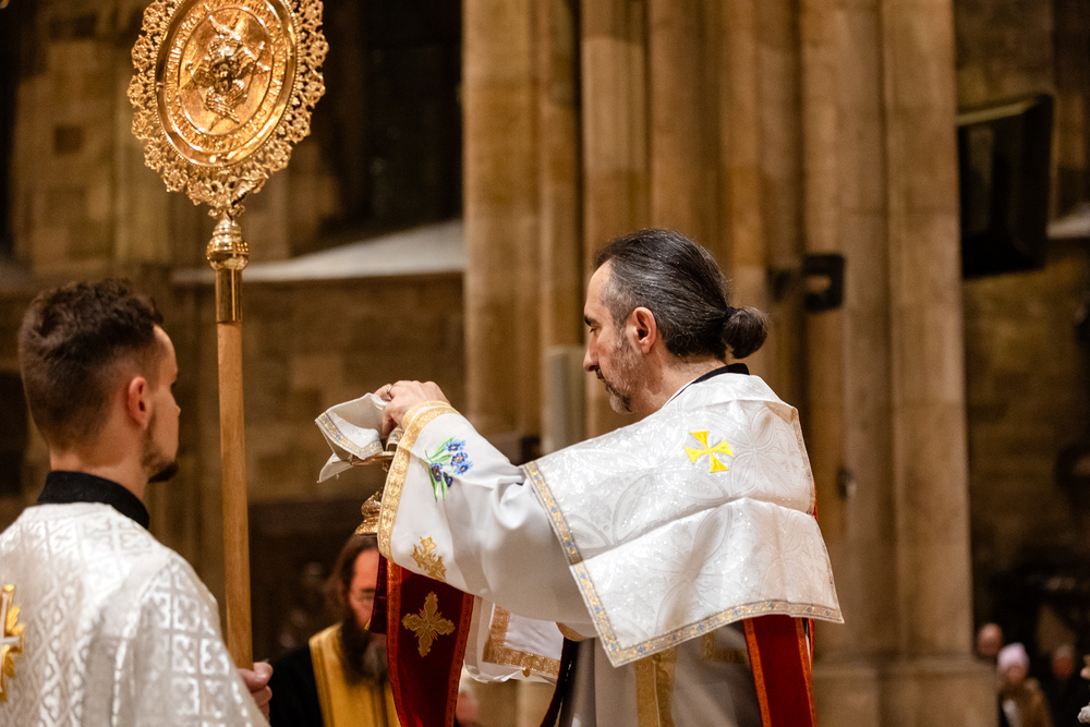 Der Wiener Erzbischof, für den angesichts seines 80. Geburtstags im Jänner demnächst ein Nachfolger ernannt werden dürfte, ist seit drei Jahrzehnten auch Ordinarius und somit Letztverantwortlicher der mit Rom verbundenen Kirchen. Deren Vertreter, angeführt vom zuständigen Generalvikar Yuriy Kolasa, würdigten Schönborns Verdienste bei einer vom Ostkirchenordinariat organisierten Feier im byzantinischen Ritus - der Göttlichen Liturgie des heiligen Johannes Chrysostomus. Wir waren mit der Kamera dabei.