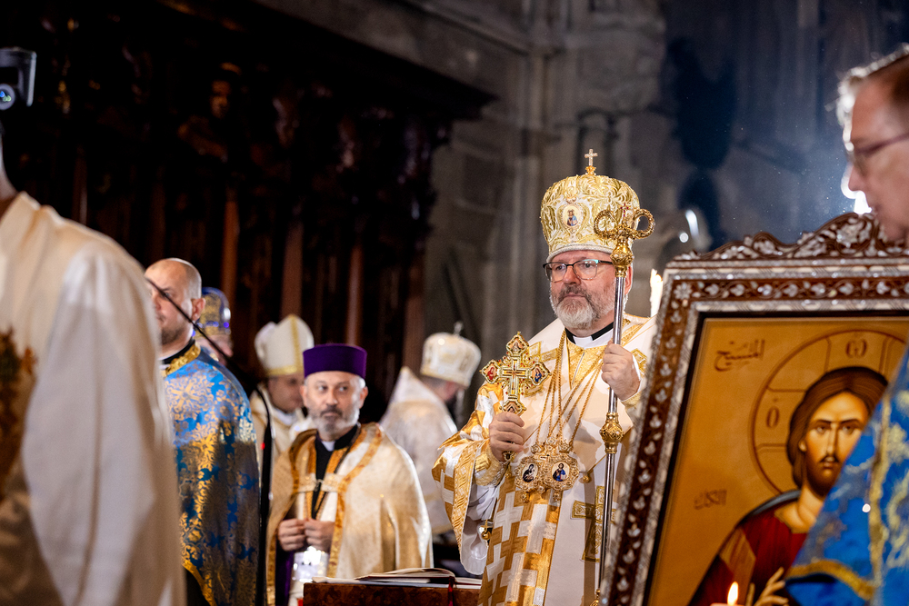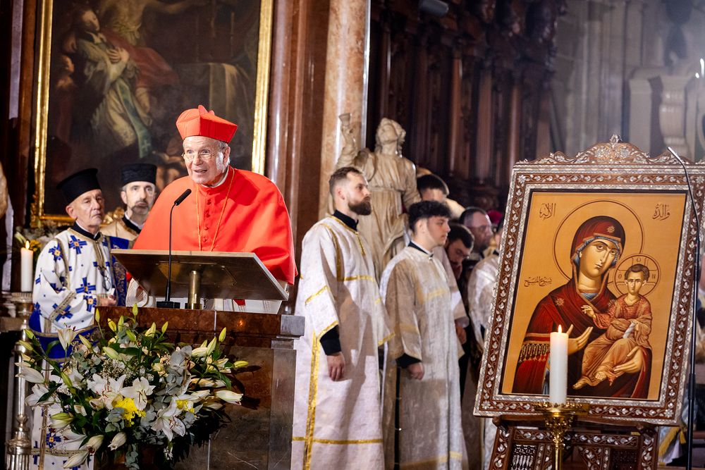 Gottesdienst im byzantinischen Ritus war Mittwochabend liturgischer Höhepunkt der Wiener Vollversammlung der Bischöfe der katholischen Ostkirchen Europas - Kardinal Schönborn in Predigt: "In der Liturgie sind wir ganz besonders mit dem Himmel verbunden", gerade in Zeiten des Krieges und der Not. Wir waren mit der Kamera dabei.
